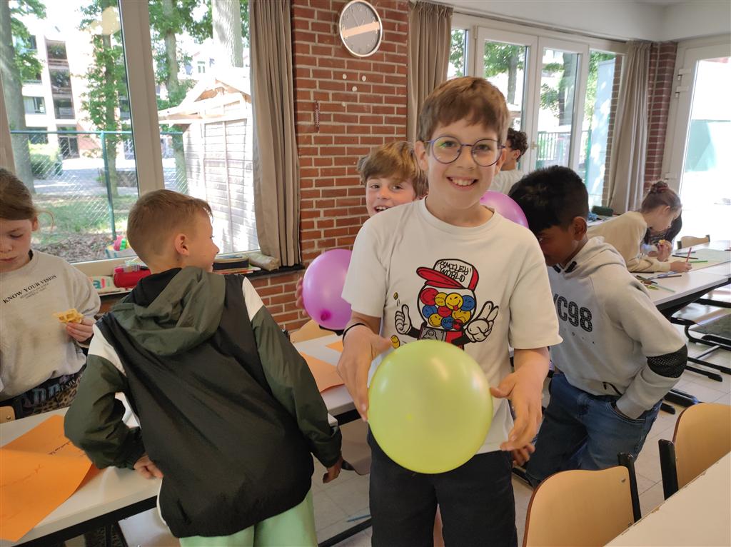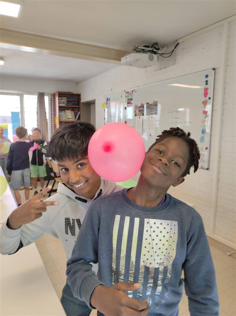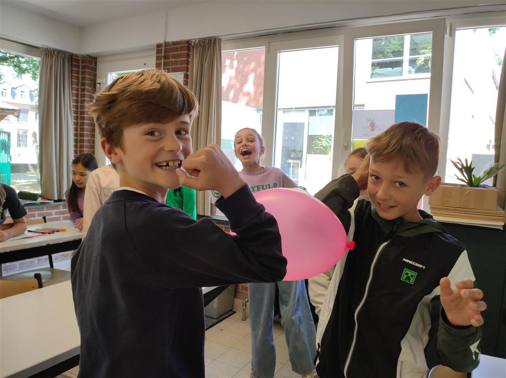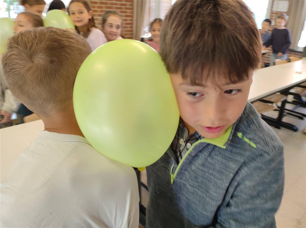 Samen een ballonnen rups vormen zorgt zowel voor plezier als voor samenhorigheid en een mooie afsluiter van het hoofdstuk “Het geweten, volg je innerlijk kompas”